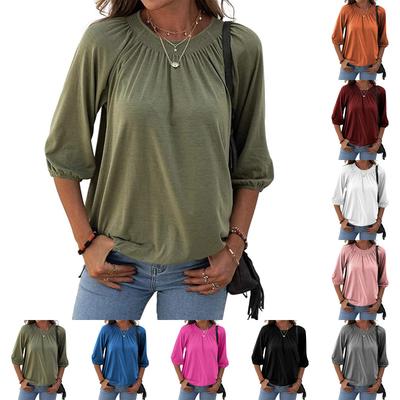 Women's Fashion Casual 3/4 Sleeve Solid Color Shirt Women's Round Neck Tops
