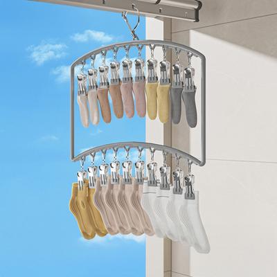Windproof Clothes Hanger 20 Clips Sock Hanger Stainless Steel Drying Rack for Socks Underwear Baby Clothes Diapers Towels