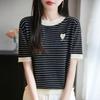 Summer New Heart-shaped Round-neck Knitted Sweater, Short-sleeved, Color-blocked Striped Embroidered Base Vest