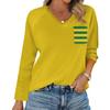 Women's Raglan Long Sleeve V-Neck T-Shirt Splicing Solid Color Casual Top Pullover V-Neck Pocket Bottoming Shirt