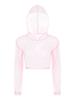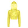 Womens Sparkly Sheer Top Hooded Long Sleeve Cropped Design Loose Fit Tops Club Rave Party