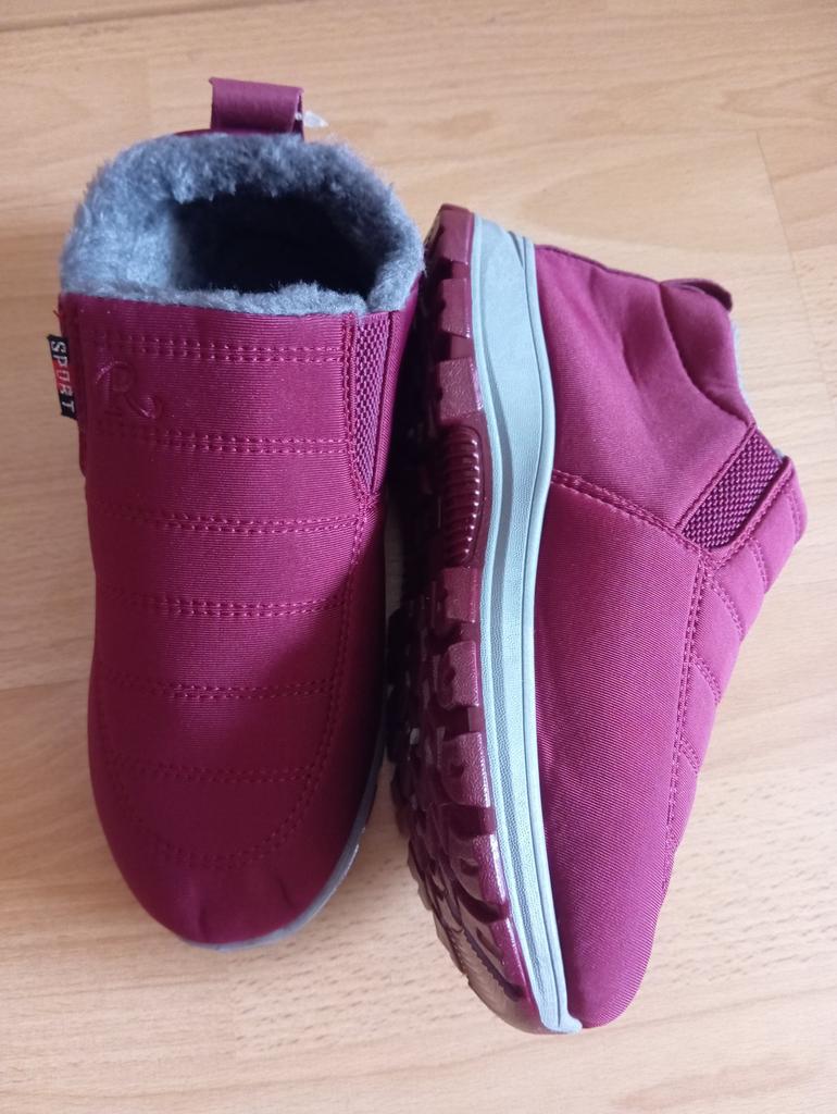 Winter boots Very comfortable. Lightweight. Soft inside. Put on easily, with a loop at the heel. Size 39 for a foot of 24.5 cm fit, but there is no extra space. I recommend!