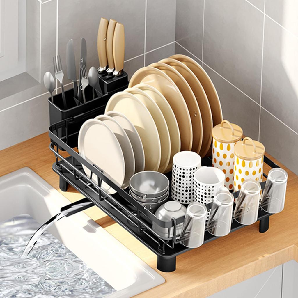 [Save Space] The large size of the drainer provides ample space for bowls, plates, cups, glasses, chopsticks, knives, spoons, etc., so everything is organized and easily accessible. By combining options, you can arrange them rationally, making them lightweight, space-saving, and flexible to use. It can increase the cleanliness and organization of your kitchen.