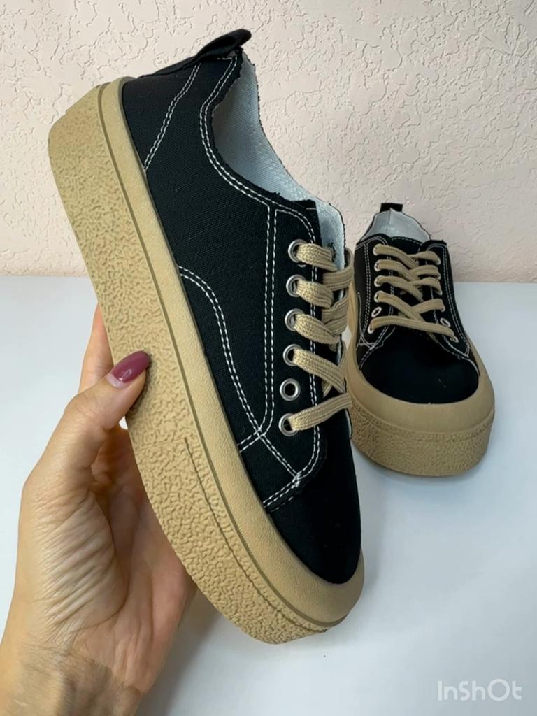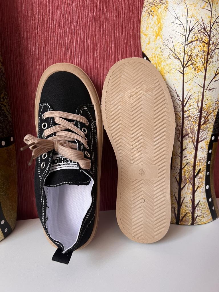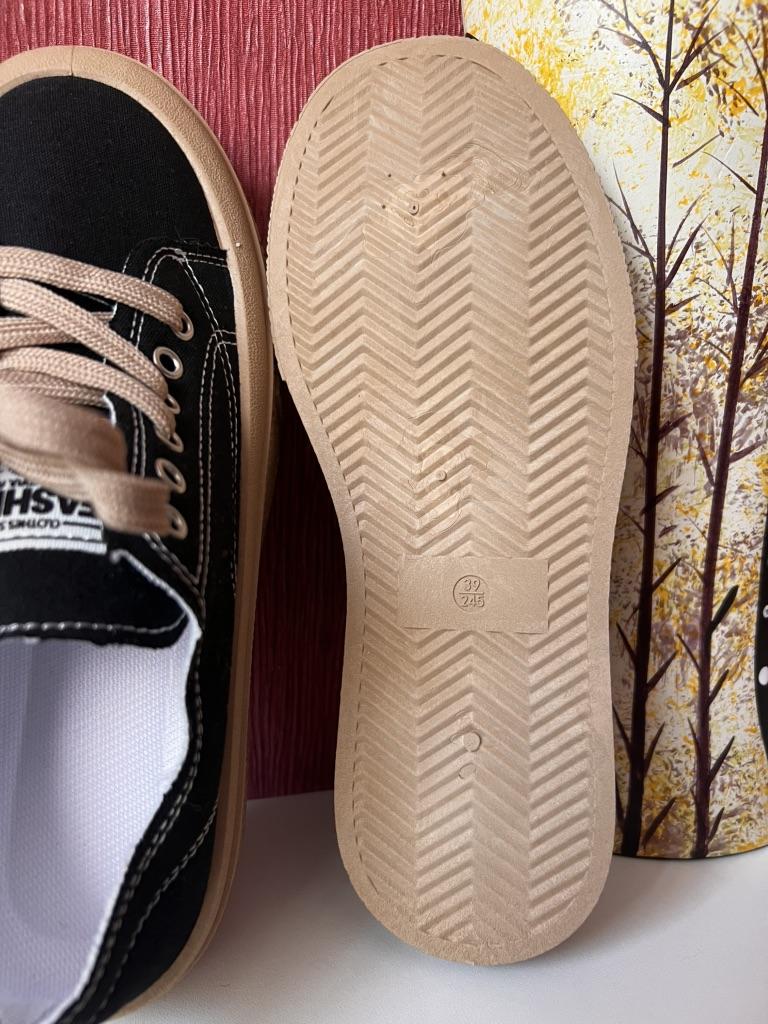 Beautiful lace-up sports shoes., Canvas shoes. Delivery time: 🚚🚛✈️✈️✈️21 days to Germany. Scope of delivery: Included in the scope of delivery is a pair of beautiful sneakers in the corresponding size.. The product is only available in black ⚫️. The sneakers are available in sizes from 35 to 40. I ordered it in size 38 and they are perfect for me 👍 I usually wear a 37. My foot length is 23.8 cm. 👍👍The sneakers run true to size. The color of the shoes is exactly as pictured.👍👍 👍👍👍👍👍. 🤩 They are very light and comfortable, seem to be well made and do not have an unpleasant chemical smell. TOP!!! I am very satisfied with the quality of the shoes!👍👍👍✅️ The product is ideal for everyday wear. ✅️❗️🔝🔝🔝Perfect for spring and summer 👍 Summary✅️: Very nice shoes that need to be ordered in a normal size. They run true to size. Thank you joom and the seller 😘😘🙏 5 stars 🌟 🌟 🌟 🌟 🌟