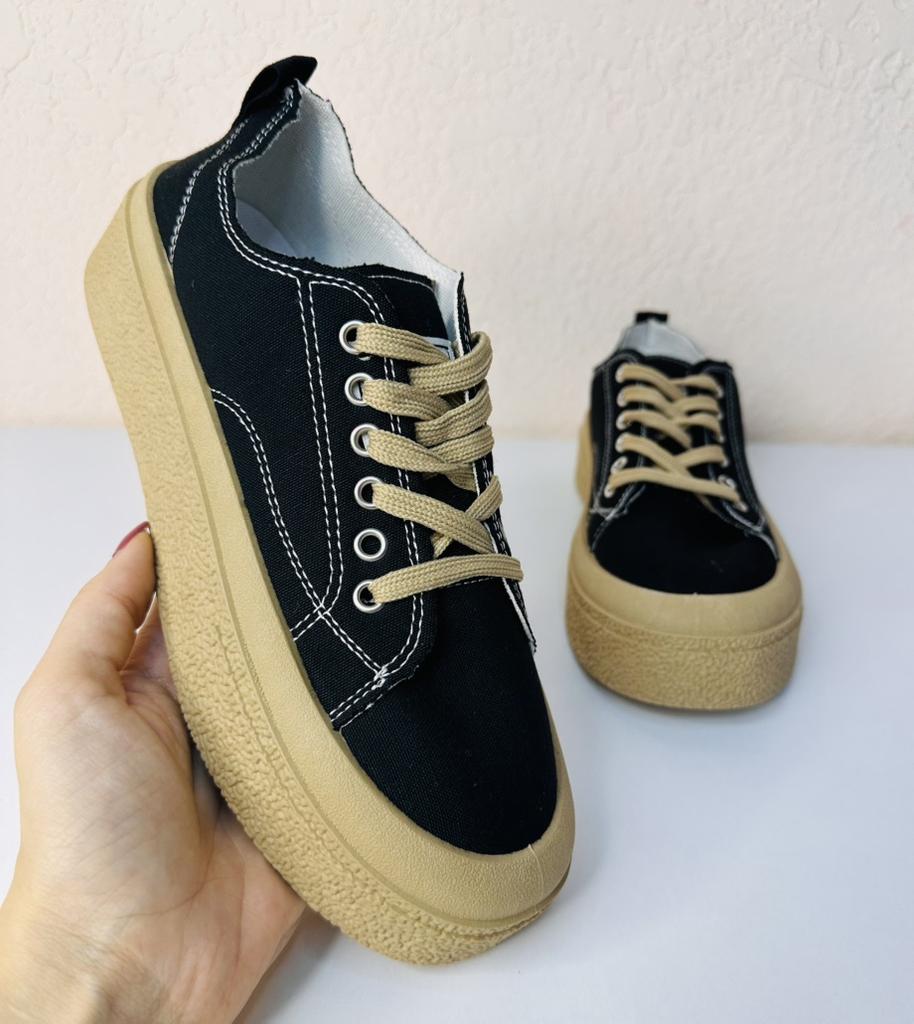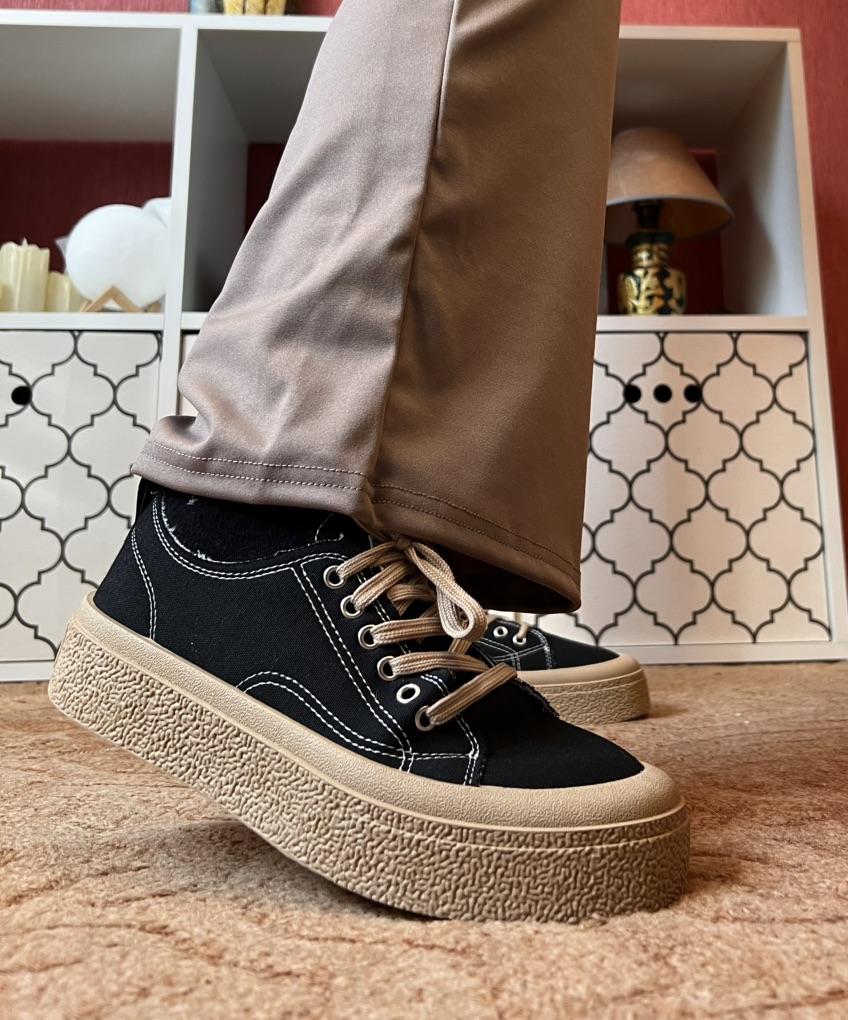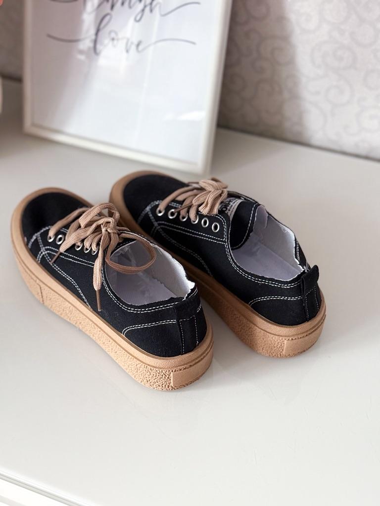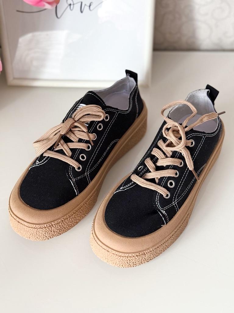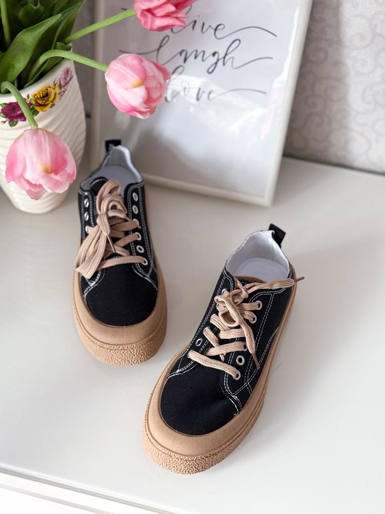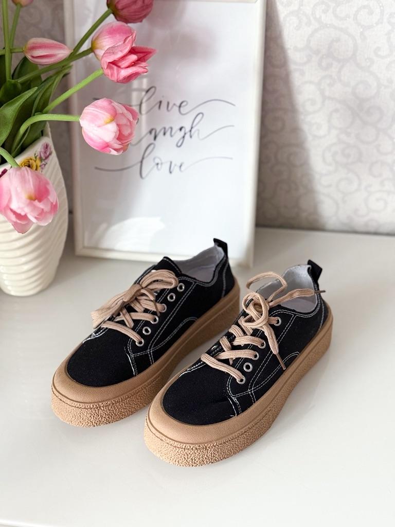 These canvas shoes are an excellent combination of comfort and everyday style. The thick sole provides support and a slight height boost, while maintaining comfort thanks to a plush PU insole.. The design with sequins adds a fashionable touch that is especially suitable for those who love to incorporate striking elements even in a casual look.. The suede upper provides a soft and comfortable feel, and the front tie allows for a precise fit to the foot. These are shoes suitable for everyday walking, errands, or a light outing in the city – a comfortable and fashionable choice for pleasant weather.