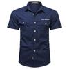 Experience the perfect blend of comfort and style with this men's casual military shirt. Crafted from high-quality cotton, it features a distinctive square neckline and a loose fit that ensures breathability. The shirt's washed, solid design and short sleeves make it a versatile staple in any wardrobe, suitable for any casual occasion.