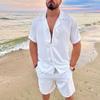Introducing the perfect blend of comfort and style for your summer wardrobe! This Men's Cotton-Linen Hawaiian Turn-Down Collar Short Sleeve and Shorts Set is designed to keep you cool and fashionable during warm days. Made from a premium cotton-linen blend, this set offers breathability and a lightweight feel. The turn-down collar and short sleeve design bring a touch of classic Hawaiian flair to your look. Whether you're lounging at home or enjoying a day out, this versatile set ensures you stay relaxed and effortlessly stylish.