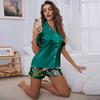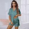 Experience the ultimate in comfort and style with this luxurious pajama set, perfect for warm summer nights. Made from high-quality silk, this set offers a smooth and breathable feel, ensuring a restful sleep. The set features a simple yet elegant design with a short sleeve top and matching striped bottoms in a solid color, providing a chic and casual look for your at-home relaxation. The silk material enhances durability and adds a touch of sophistication to your loungewear collection. Ideal for unwinding after a long day or enjoying a lazy morning at home.