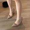 Side Empty Rivet High Heels Women's Stiletto Temperament Professional Women's Shoes Nude Patent Leather Pointed Sexy Sandals