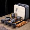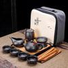 Portable Purple Clay Xishi Teapot Set with Leather Bag and Tea Tray for Home, Travel, or Business