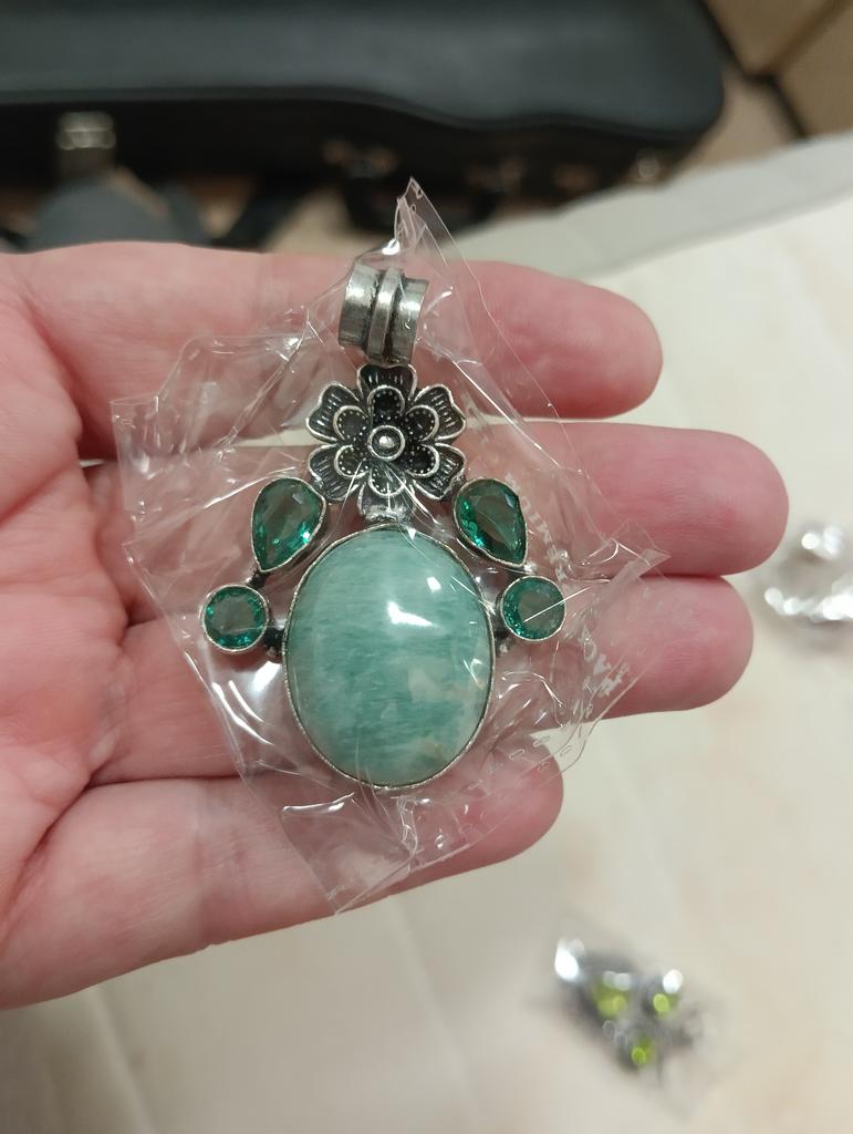 Natural Amazonite, Topaz Gemstone 925 Sterling Silver Jewelry Pendant 2.17"