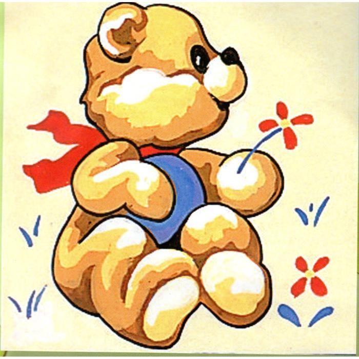 Kit Canevas - Ourson - 14 x 14 cm - Aiguille incluse - Fil 100% coton - Instructions fournies