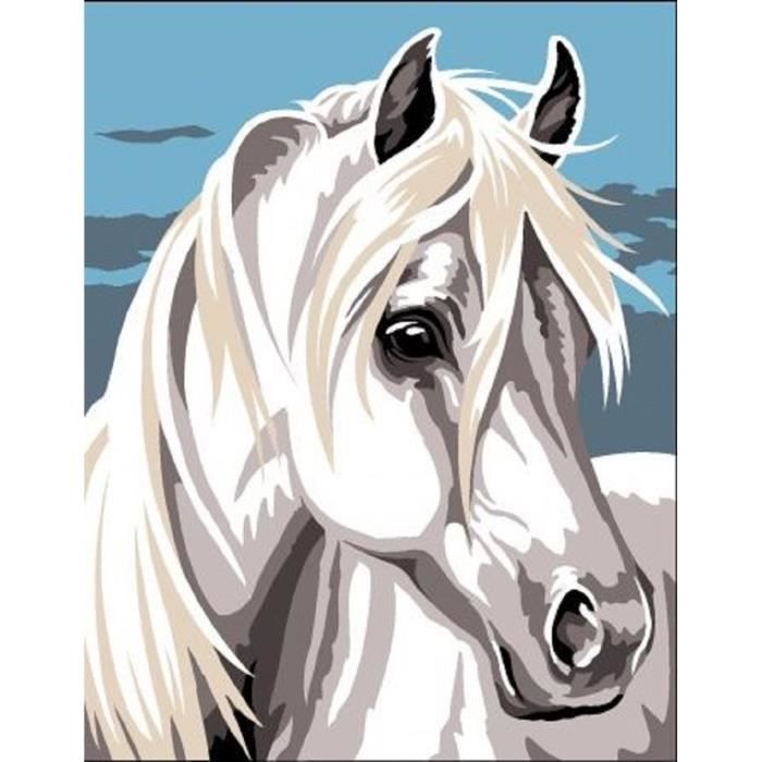 Kit Canevas - Margot - Cheval blanc - 14 x 18 cm - Aiguille et fil 100% coton - Instructions incluses