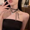 Y2K Pink Rope Tied Peach Heart Pendant Necklace For Women Retro Sweet Harajuku Necklace Charm Jewelry Gift