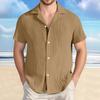 Men's Cotton And Linen Striped Casual Loose Short Sleeved Shirt
