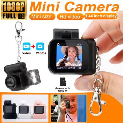 HD 1080p Mini Camera with LCD Screen Flash Lamp Portable Pocket Keychain Cam Video Recorder Digital Camera for Indoor Outdoor Home Sport