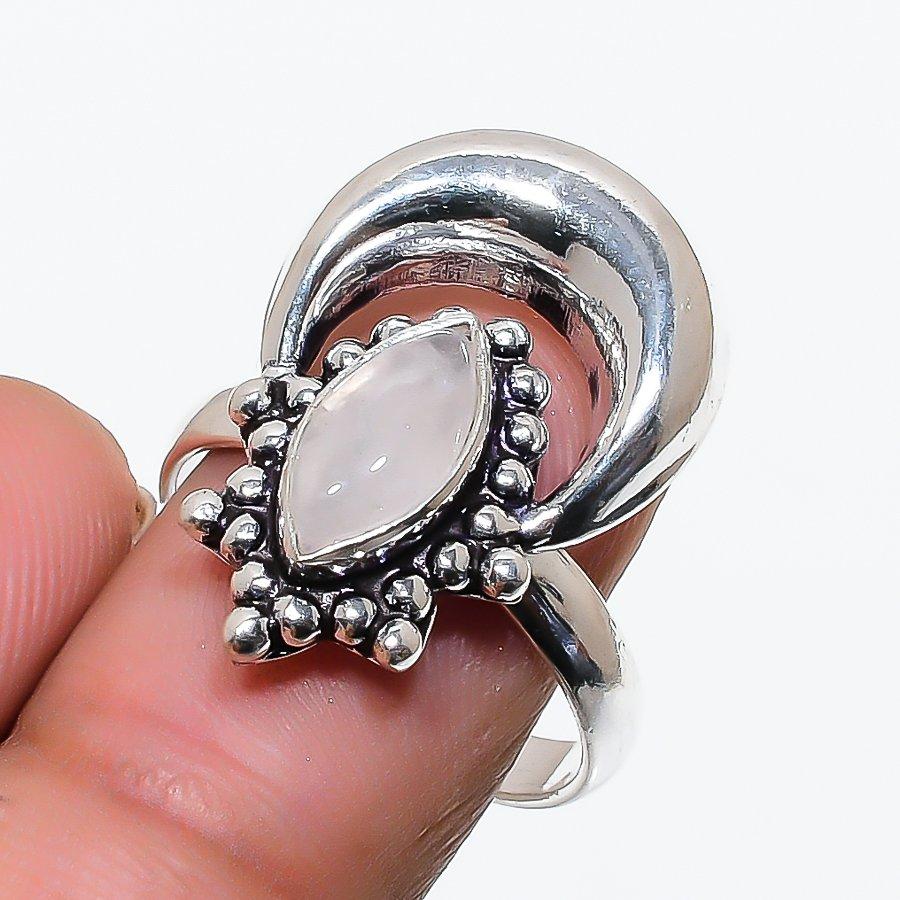 Rose Quartz Gemstone Handmade 925 Sterling Silver Jewelry Ring Size 7 SU-10490