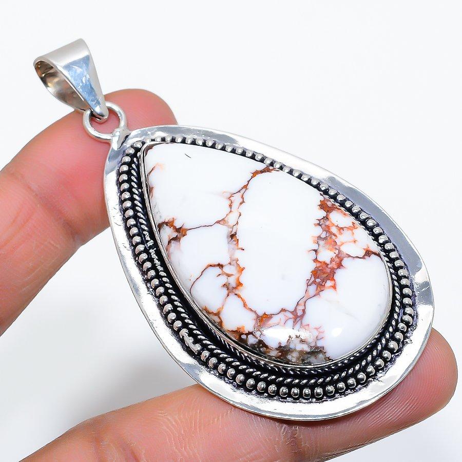 Wild Horse Gemstone Handmade 925 Sterling Silver Jewelry Pendant 2.88" SU-9949