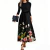 Women's Fashion Casual Belted Three-quarter Sleeve Round Neck Floral Printed Elegant Temperament Dresses