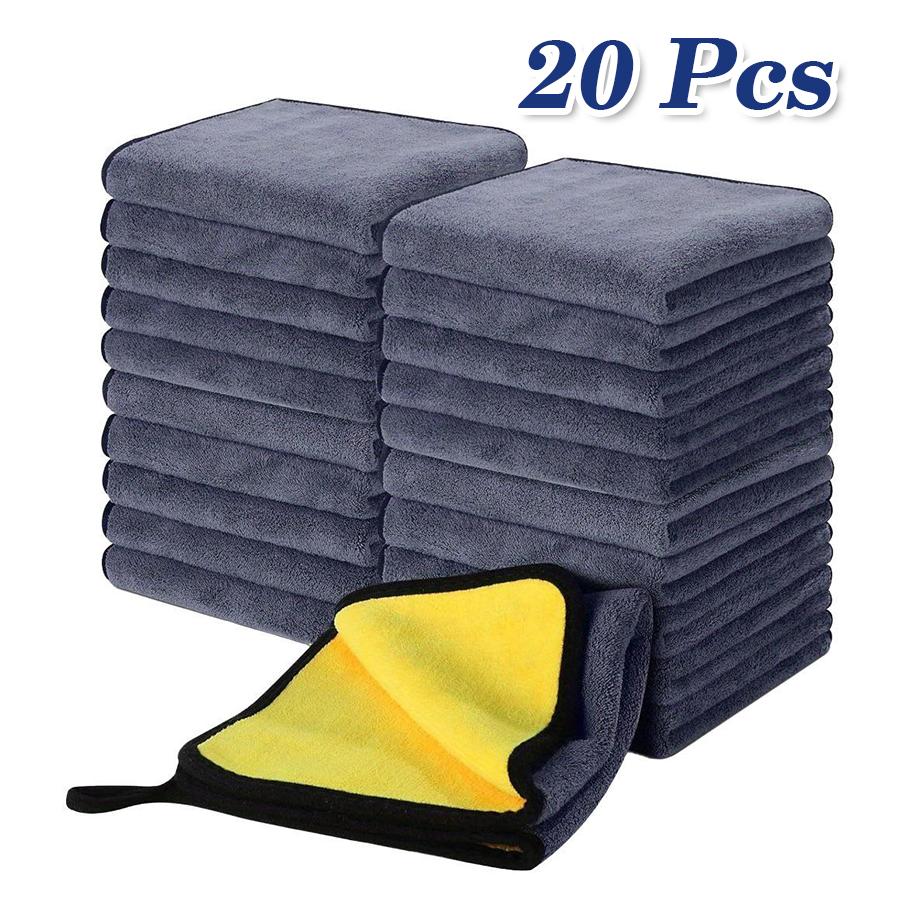20 Pcs Double-Sided Dual-Color Microfiber Detail Towels - Car Cleaning, Drying & Care Cloths, Professional Car Wash Accessories