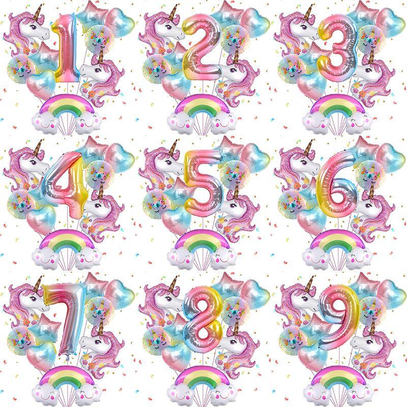 Unicorn Digital Balloon Set for Children's Birthday Party Rainbow 1-9 Birthday Party Balloon Decoration