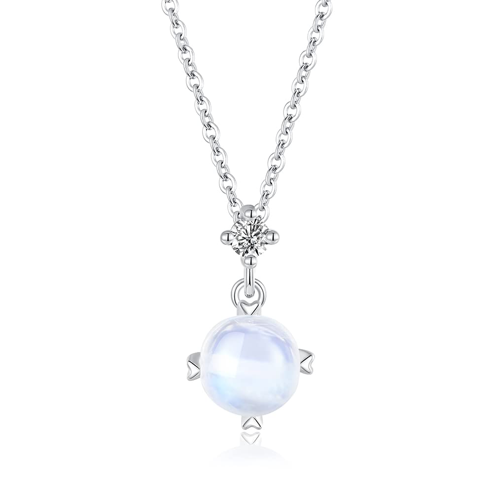 [Natural Diamond & June Birthstone Moonstone] Moonstone, like the soft, gentle light of the night moon, symbolizes health, good fortune, and a premonition of love. Its soft luster soothes a weary mind and calms the body and mind. This striking gemstone's milky blue glow accentuates the beauty of the neck and collarbone, enhancing their allure.