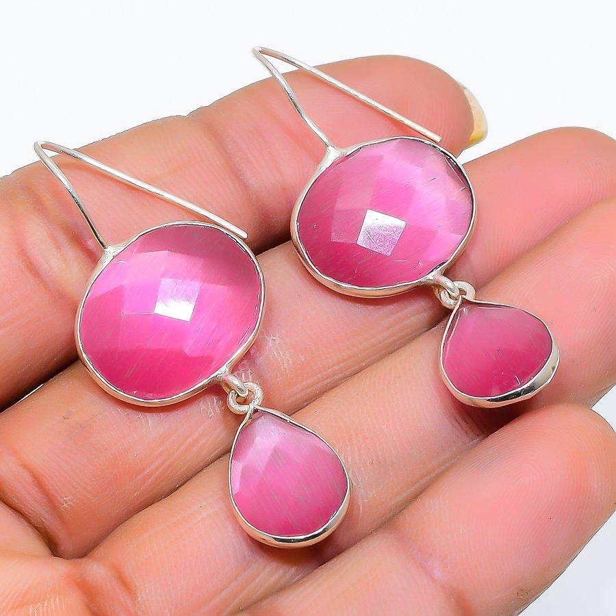 Monalisa Stone Gemstone Handmade 925 Sterling Silver Jewelry Earring 1.85" GK-5152