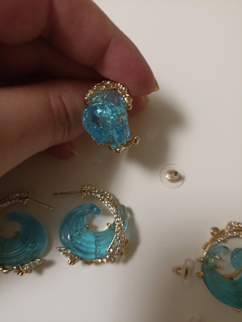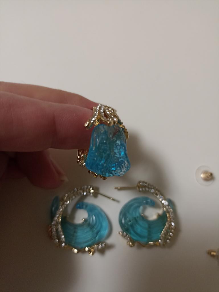 2. This jewelry skillfully captures the dynamic beauty of the framing them in every detail of the necklace, earrings, and bracelet. The gold color represents the shimmering of the sea under the sun's rays, while the blue color symbolizes the deep ocean itself. The intertwining of these two colors is not only a visual treat, but also signifies the coexistence of light and the unknown, hope and challenge.