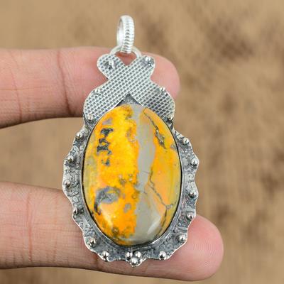 Wedding Gift For Her 925 Silver Natural Bumble Bee Jasper Gemstone Pendant