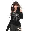 2KWEIRD Japanese Y2k Knitted Tops Grunge Tattoo Print Long Sleeve T-shirt Ribbed Vintage Harajuku Shirring Knitwear 2000s Gothic
