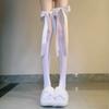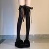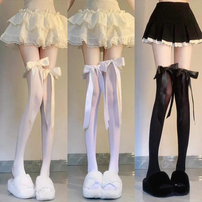 Women's Summer Thin Velvet Bowknot Ribbon JK Thigh High Stockings Sweet Lolita Princess Style Solid Color Sheer Overknee Socks