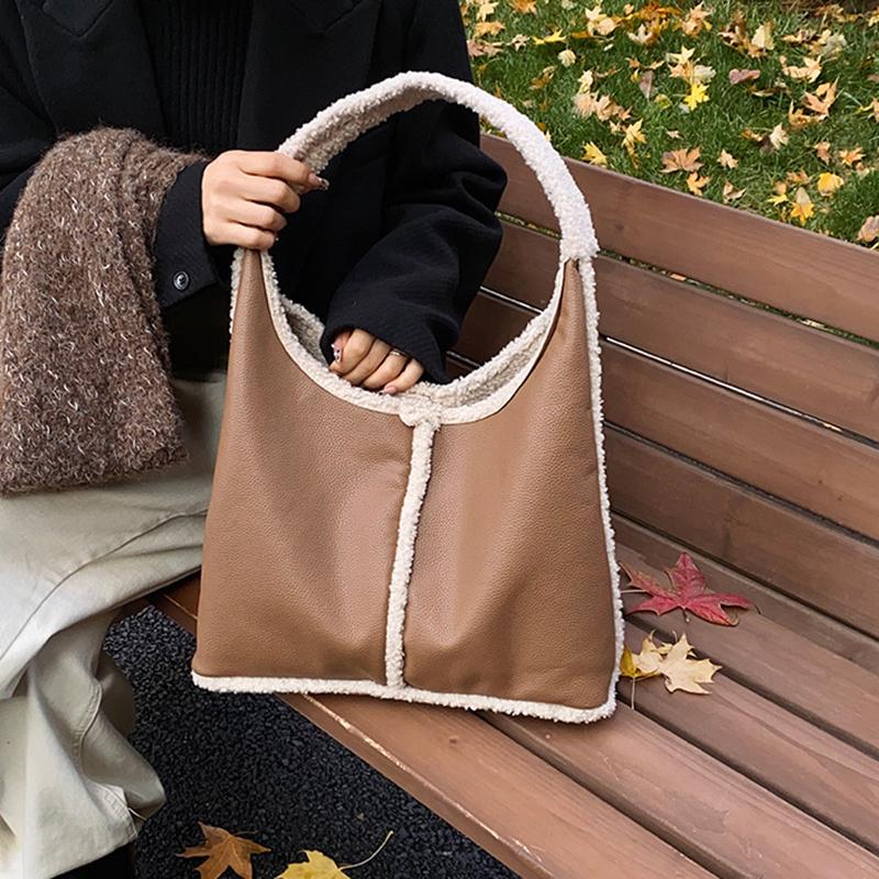 Trendy Brand Designer Lamb Wool Shoulder Bag Bucket Women Handbags And Purse Winter Lady's Leather Underarm Tote Bag