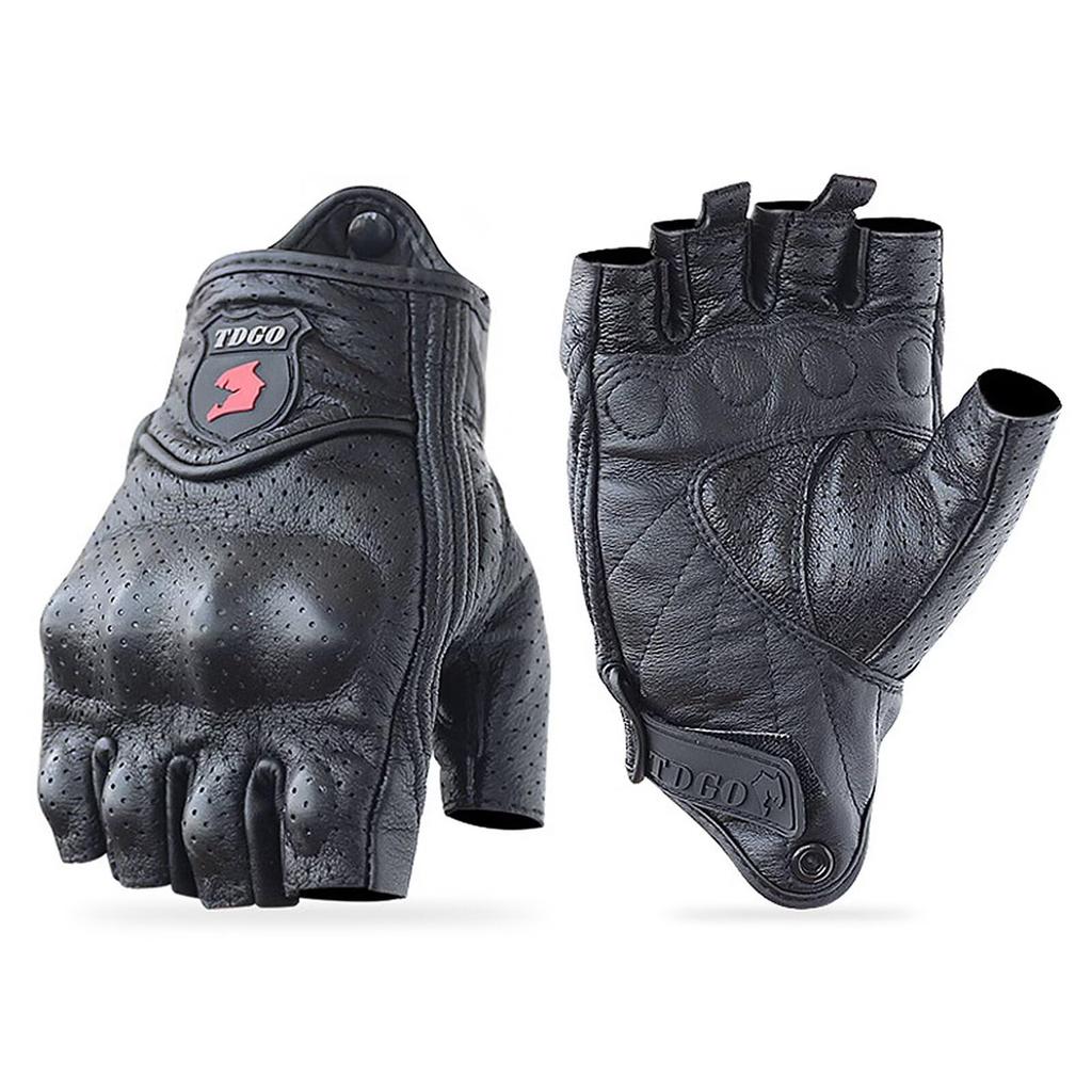 ZVCXOE Motorcycle Gloves Summer Half Finger Genuine Leather Goatskin Hard Protector Goatskin Punching Mesh