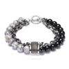 Natural Map Stone & Stainless Steel Men's Beaded Bracelet - Unique Fashion Jewelry