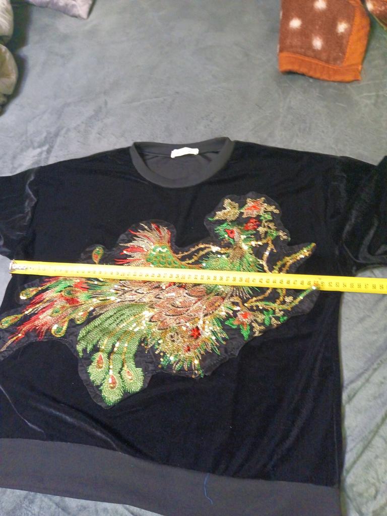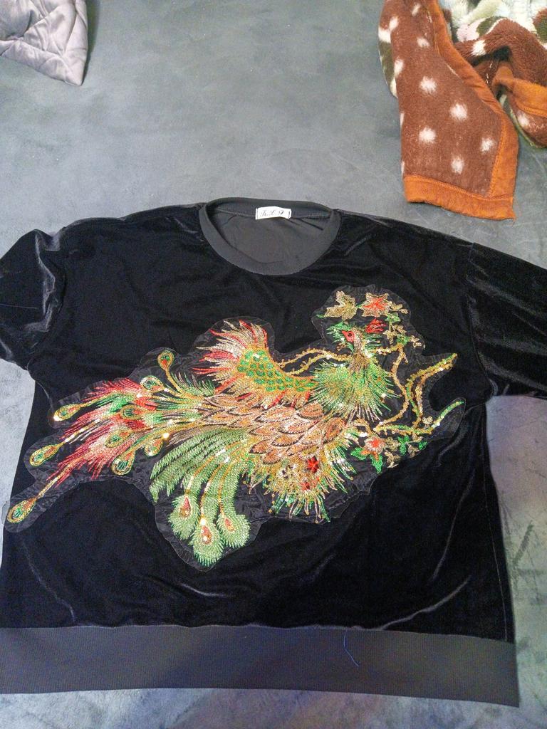 Plus Size Women's Velvet Peacock Sequin Two-Piece Set - Long Sleeve Fashion Suit for Autumn