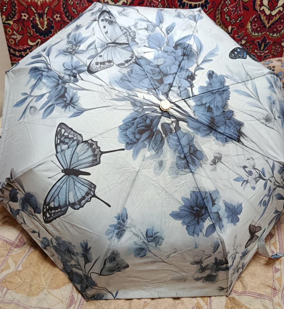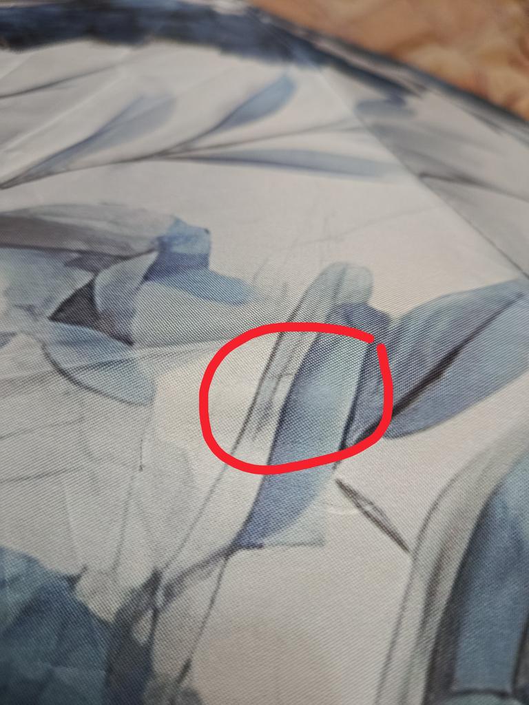 The umbrella is beautiful, the pattern is clear, but it is cut. Everything opens and closes well.