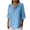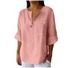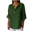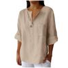 Women's 2025 Summer V-Neck Cotton Linen Button T-Shirt: Loose Fit