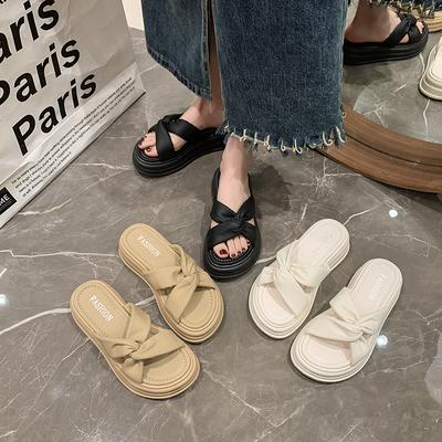 Thick-soled Sofa Soft Slippers Women's New Summer Wear Flat-bottomed One-word Slippers Comfortable and Cool Slippers