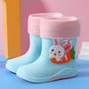 Kids' Cartoon Waterproof Mid-Calf Rain Boots with Removable Fleece Lining for Boys and Girls