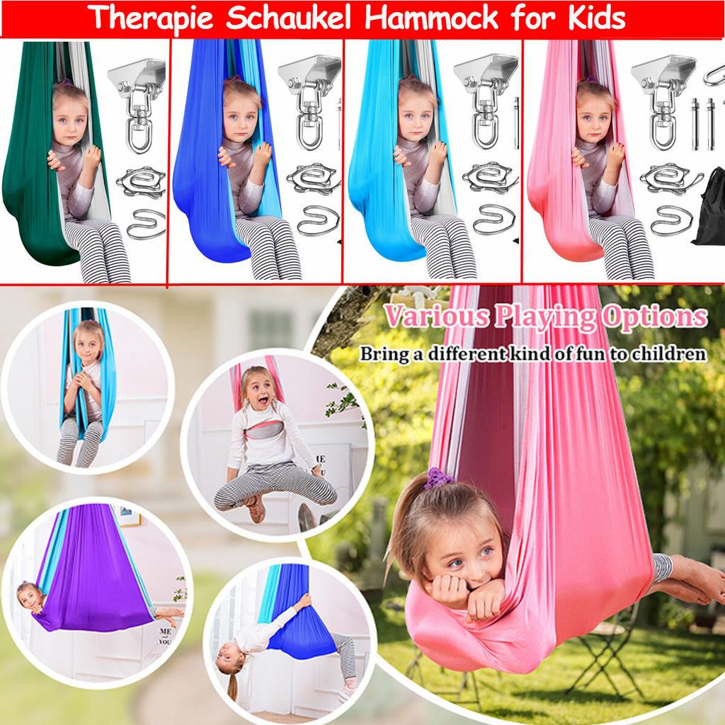 The sensory therapy swing hammock will accompany children joyfully through their childhood. Your girls and boys will love this fun swing hammock.