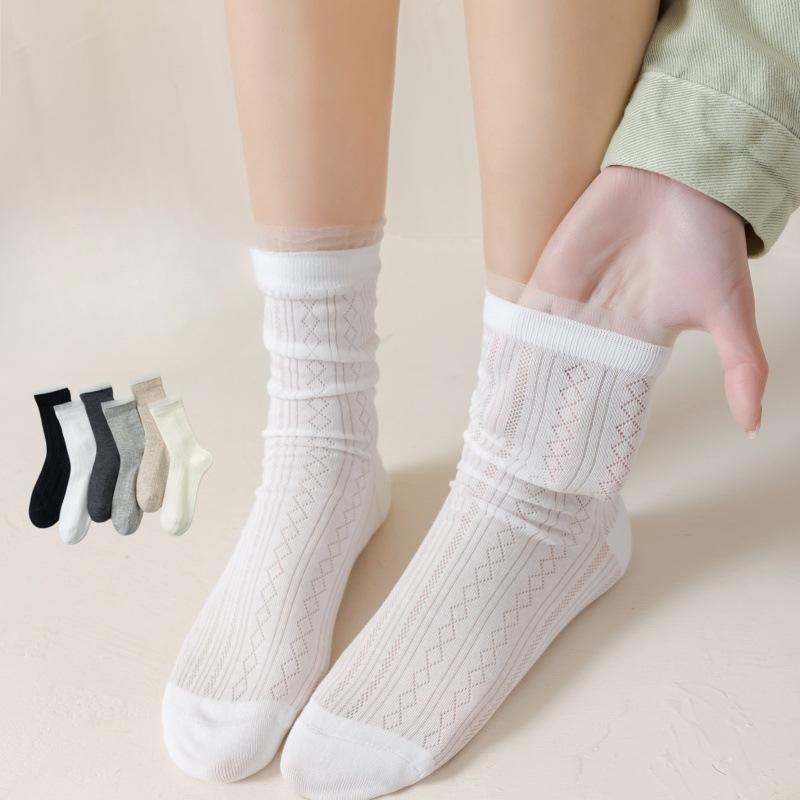 Ladies Spring and Summer New Wave Pattern Hollow Ballet Wind Breathable Boneless Tube Socks