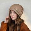 Knitted Woolen Hats for Autumn Winter Women's Ear Protection Warm Confinement Hat Fashion Versatile Big Head Circumference Pile Up Hats