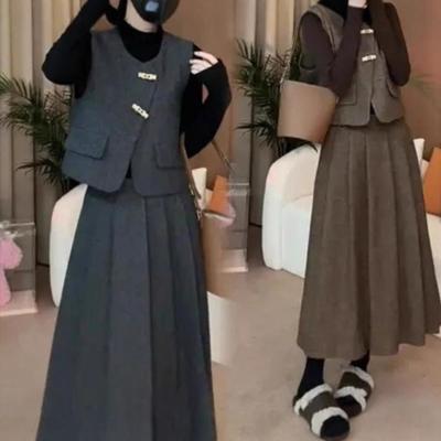 A Stylish and Slimming Korean Style Three-piece Set with A Retro Buttoned Vest and Pleated Skirt for Women In Autumn and Winter