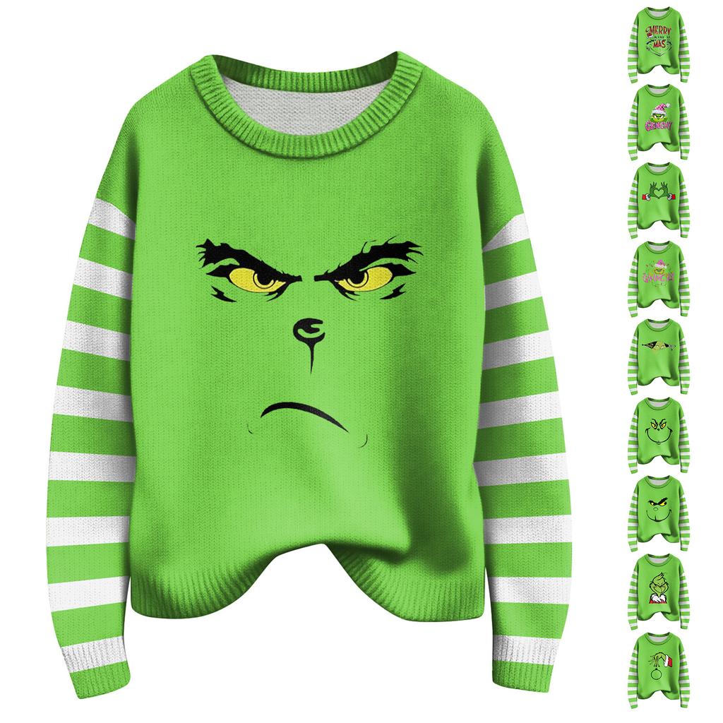 Long Sleeve Pullover Sweaters For Women O Neck Casual Cute Printing Knit Oversized Sweater