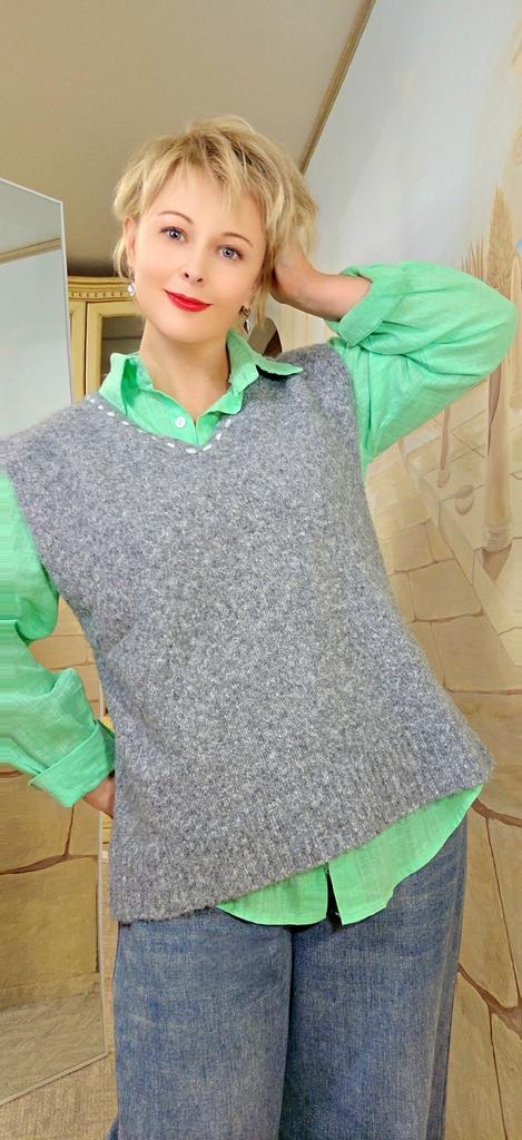 DIMANAF 2025 Sweaters Plus Size Solid Vest Autumn Buttons Women Embroidered Print O-Neck Sweaters Knitting Sweater
