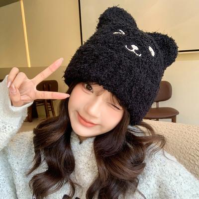 Korean New Autumn and Winter Hat for Women Cute Bear Plush Knitted Wool Hat for Winter Warm Ear Protection Hat Thick