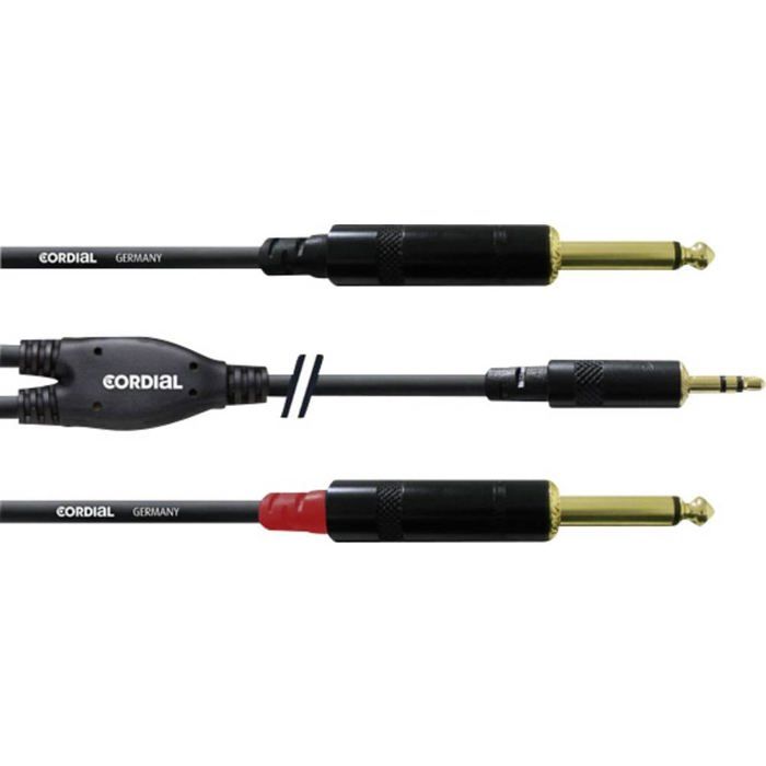 Cordial cfy 6 wpp y-adaptateur jack 3,5mm stéréo or vers 2 jacks 6,3mm mono or, 6m