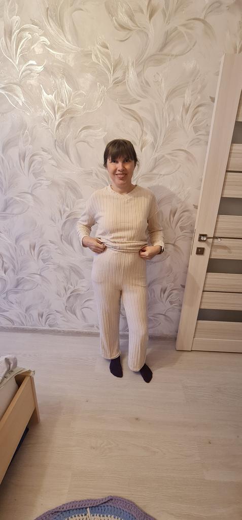 Women's Set of Loose Casual Long-sleeved V-neck Pit Striped Brushed Top and Trousers 2-piece Set