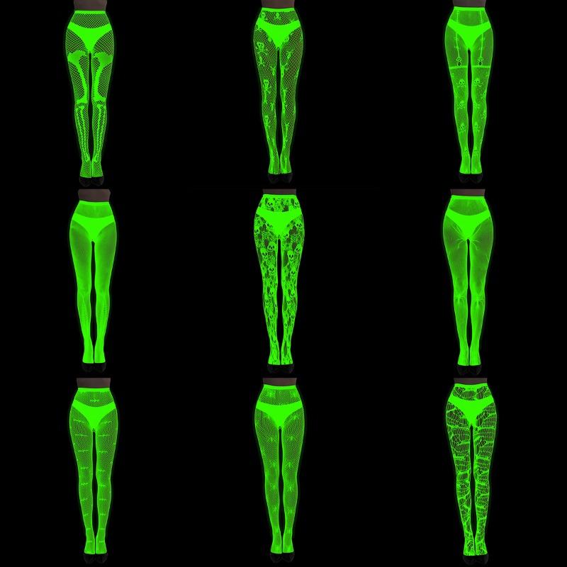 Fluorescent Pantyhose Luminous Fishnet Socks Green Light Sexy Tattoo Lace Body Jacquard Lace Hollow Socks