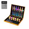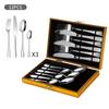 Golden Wooden Box Stainless Steel Cutlery Set - Steak Knife, Fork, Spoon for Western Dining